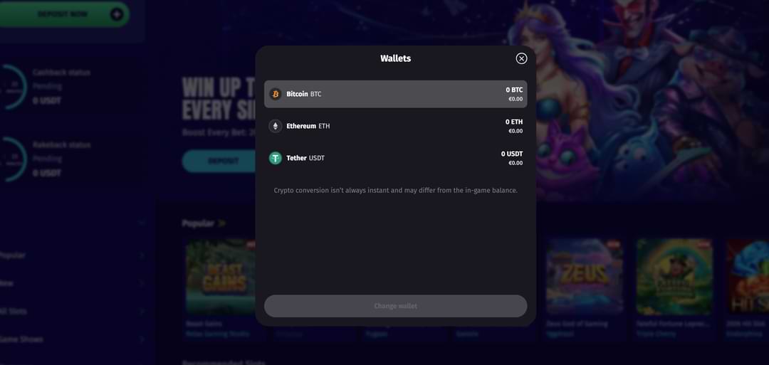 Deposits made at Hyper Lucky Casino are processed after the blockchain network confirms the transaction.